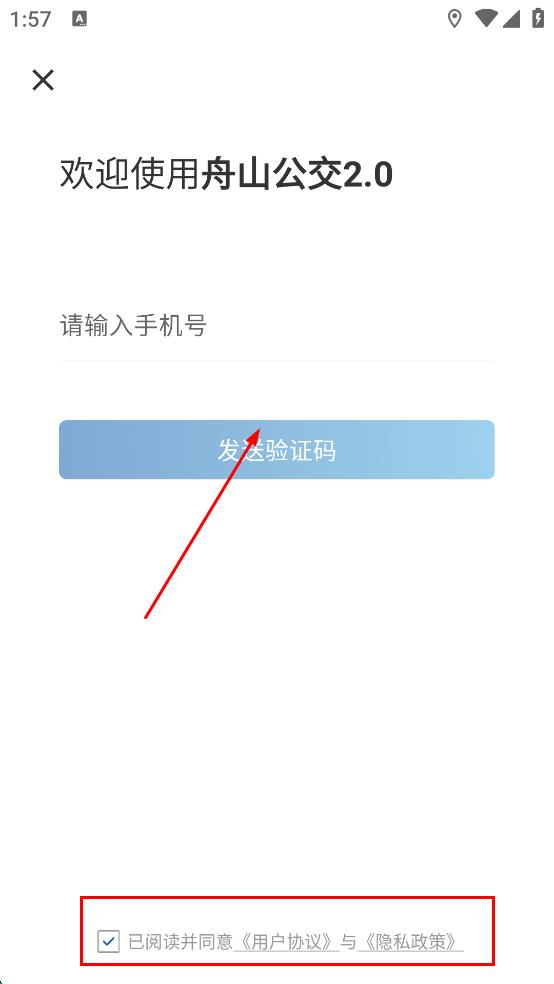 4、確認后返回登錄界面,輸入手機號,勾選“已閱讀并同意《用戶協(xié)議》與《隱私政策》”,然后點擊“發(fā)送驗證碼”按鈕,接收驗證碼后完成登錄操作。