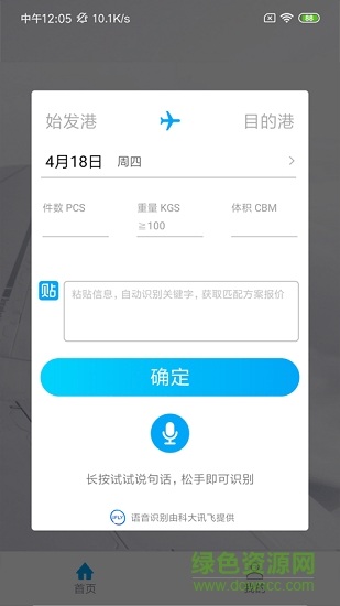 1、打開(kāi)“三腳貓電商”App,顯示出發(fā)地、目的港、簡(jiǎn)述、重量、體積5個(gè)選項(xiàng)。