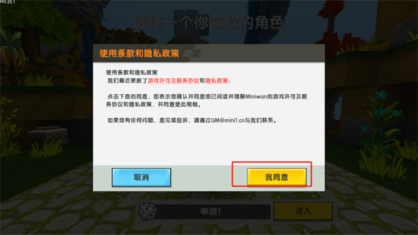 2、此時玩家將需要同意一個隱私條例政策,點擊彈窗右下方的【我同意】按鈕即可;