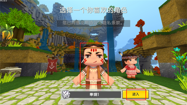 3、進入到選角的頁面后,玩家將需要點擊一個自己喜歡的角色,并為自己的角色取一個名字,最后點擊【進入】即可;
