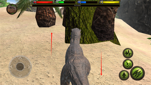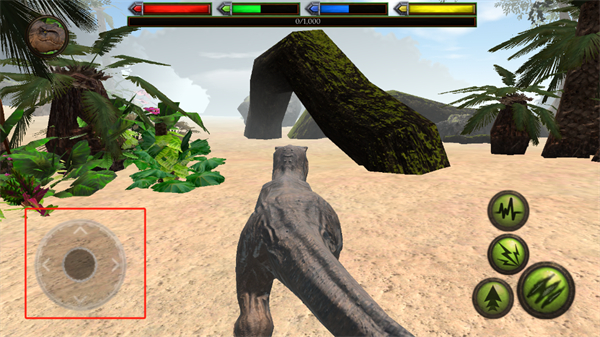 2、看清恐龍的身體狀況后,可以根據(jù)它的身體來進(jìn)行行動,左下角的按鈕是恐龍的移動按鈕;