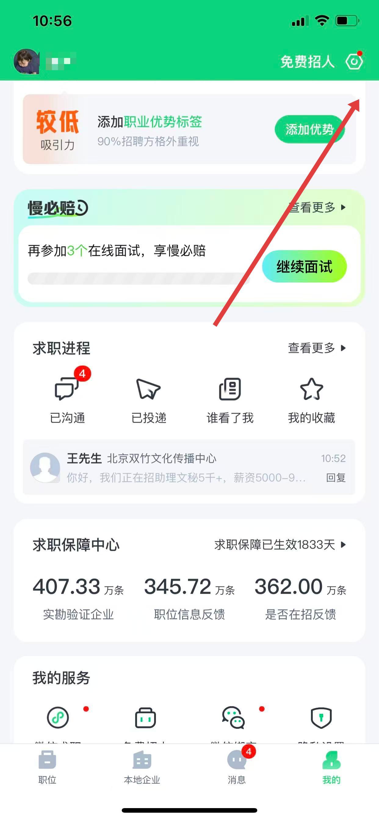 1、打開趕集招聘商家版App,進(jìn)入個(gè)人頁(yè)面,點(diǎn)擊設(shè)置。