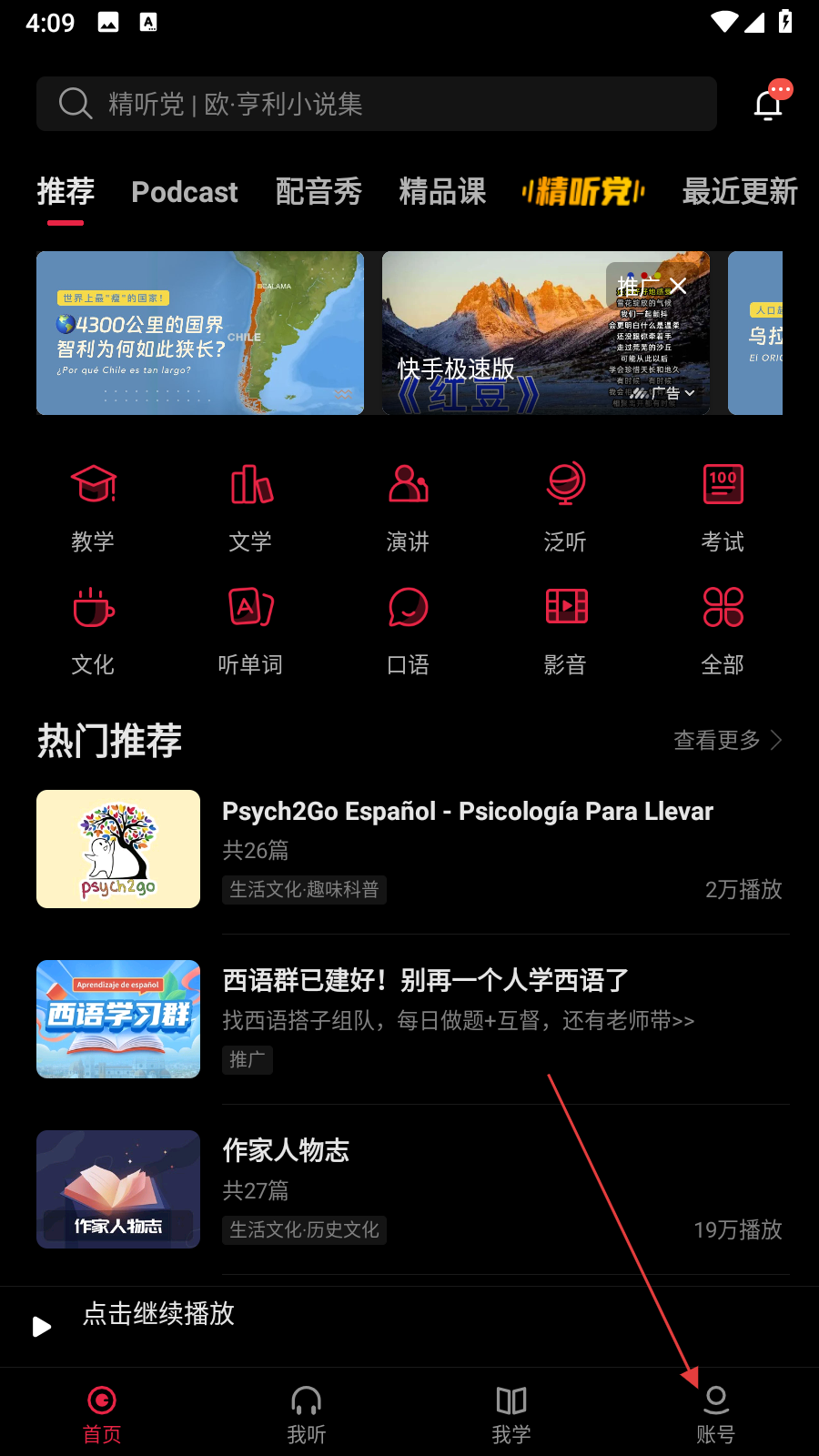1、打開每日西語聽力APP,點擊底部導航欄右下角的賬號,進入賬號頁面。