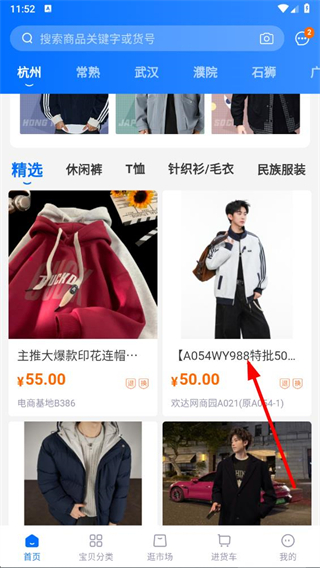 1、打開網(wǎng)商園app,在首頁瀏覽商品,找到想要購買的衣服后,點擊該商品進入商品詳情頁。