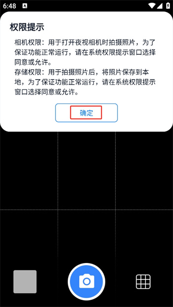 3、之后上面會(huì)彈出一個(gè)權(quán)限提示的窗口,直接點(diǎn)擊【確認(rèn)】同意這個(gè)軟件對(duì)于手機(jī)的應(yīng)用權(quán)限;