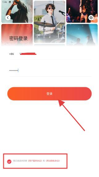 4、再輸入密碼后,勾選我已閱讀并同意用戶協(xié)議和隱私政策,再點(diǎn)擊登錄的按鈕即可。
