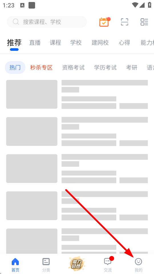 1、在能力天空的首頁,需要點擊底部我的,進入個人的頁面。