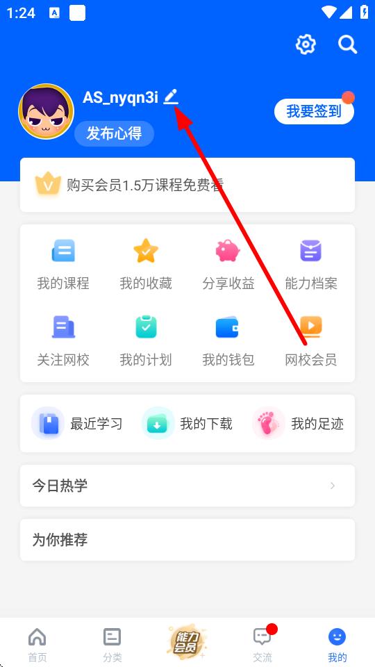 2、在個人的頁面,點擊用戶名旁的編輯圖標,彈出操作選項。