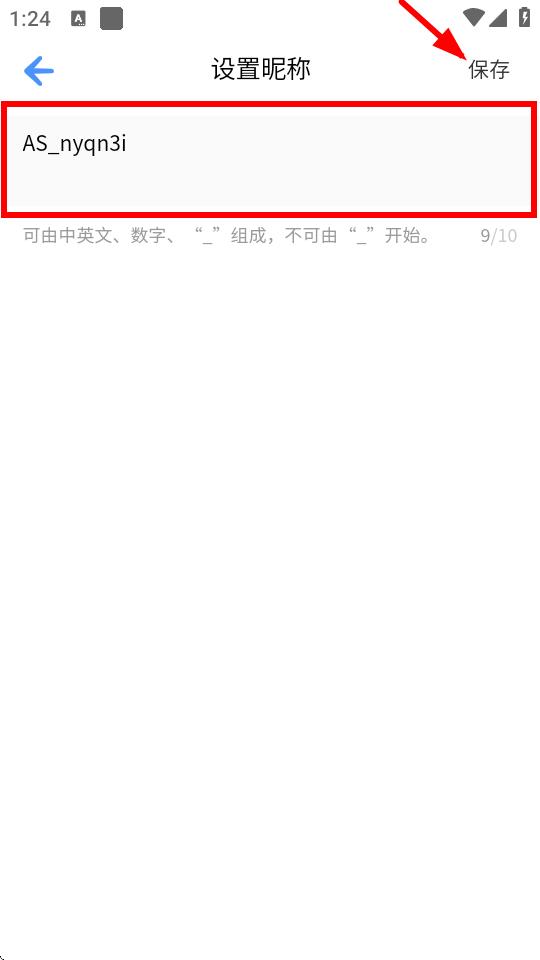 4、在設(shè)置昵稱頁面,輸入新用戶名后點擊保存,完成用戶名修改。