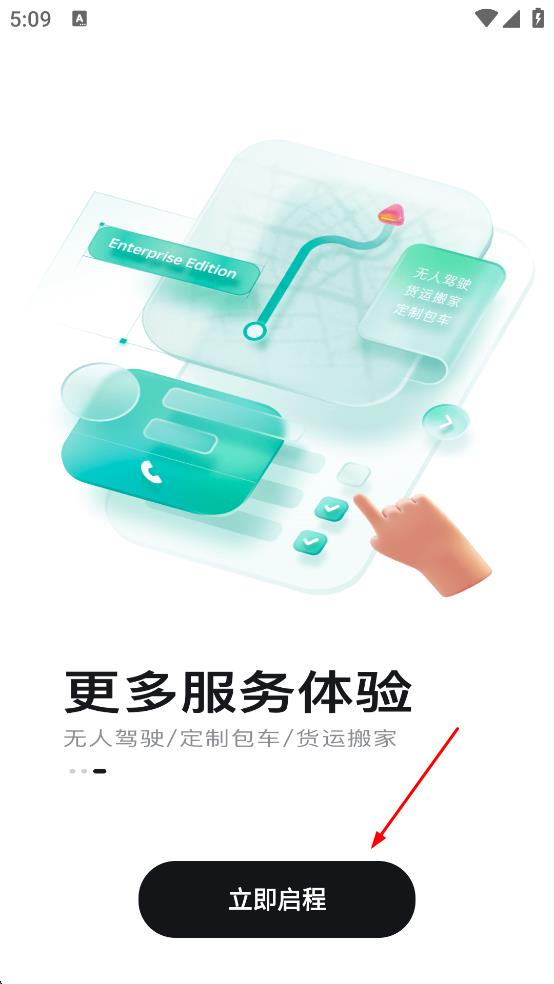 2、在應(yīng)用介紹頁面,點(diǎn)擊“立即啟程”,進(jìn)入到注冊/登錄頁面。