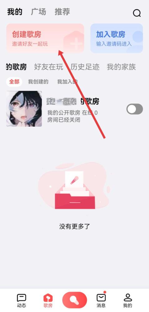 2、在我的歌房頁(yè)面中,需要點(diǎn)擊創(chuàng)建歌房的按鈕,進(jìn)入歌房玩法的選擇界面。