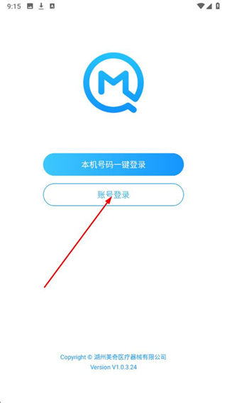 1、打開(kāi)美奇APP,在登錄頁(yè)面點(diǎn)擊賬號(hào)登錄。