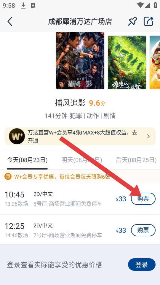 1、打開萬達影院APP,在首頁正在熱映區(qū)域找到自己想看的目標(biāo)電影,點擊進入影片詳情頁面。