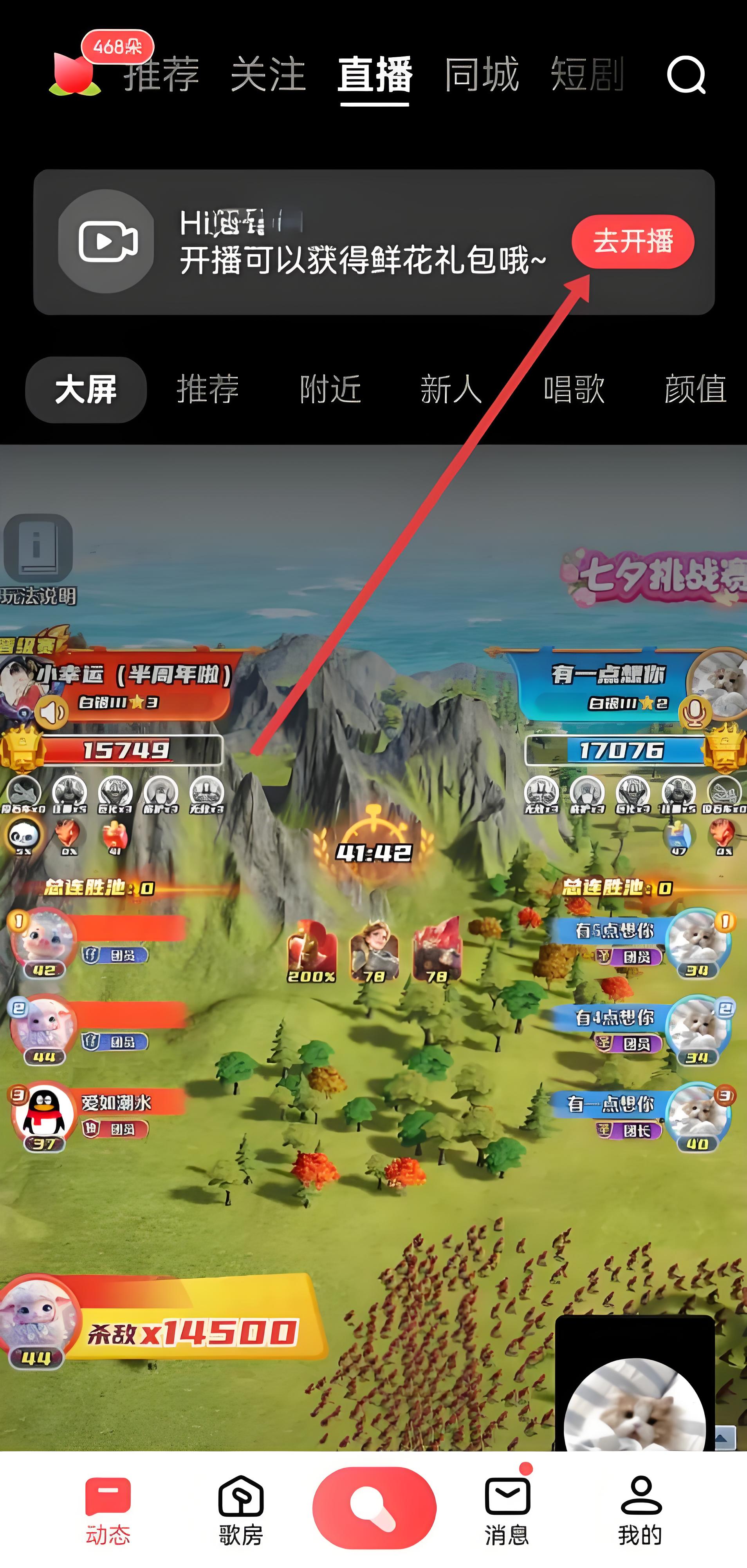3、需要等待系統(tǒng)加載后,即可進入直播界面開始直播,可以與觀眾互動、演唱歌曲。
