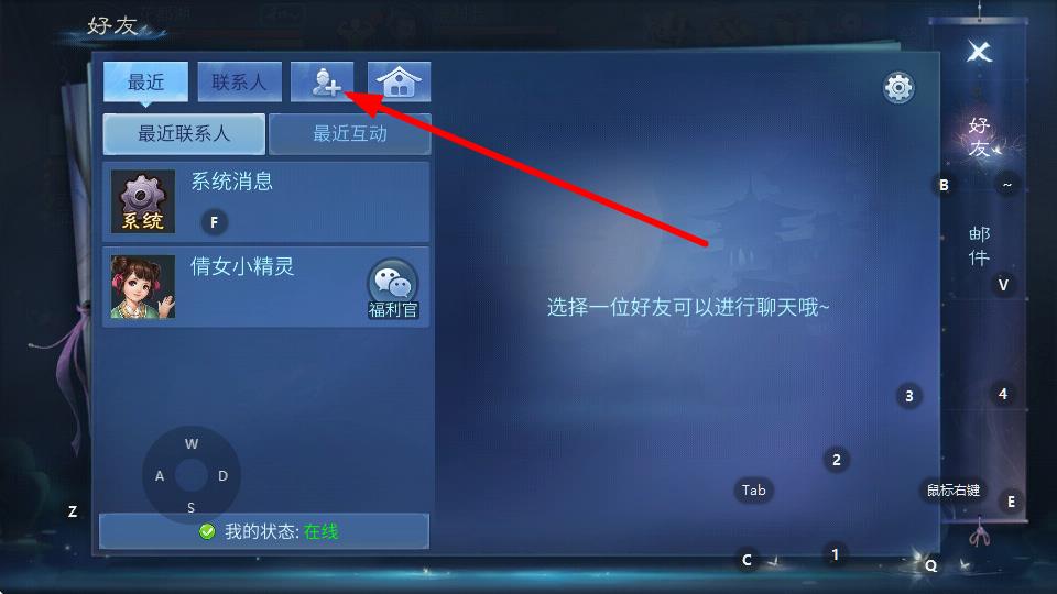 2、在好友界面中點(diǎn)擊帶有+號(hào)的添加好友按鈕,進(jìn)入添加好友操作頁(yè)面。