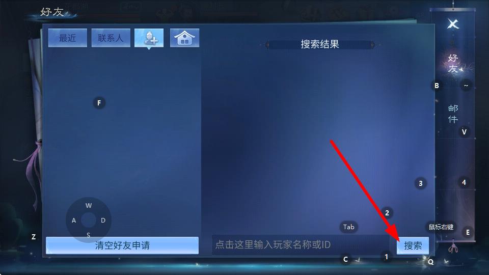 3、在輸入框中輸入玩家名稱或ID,點(diǎn)擊搜索按鈕,找到目標(biāo)玩家后發(fā)送好友申請(qǐng)。
