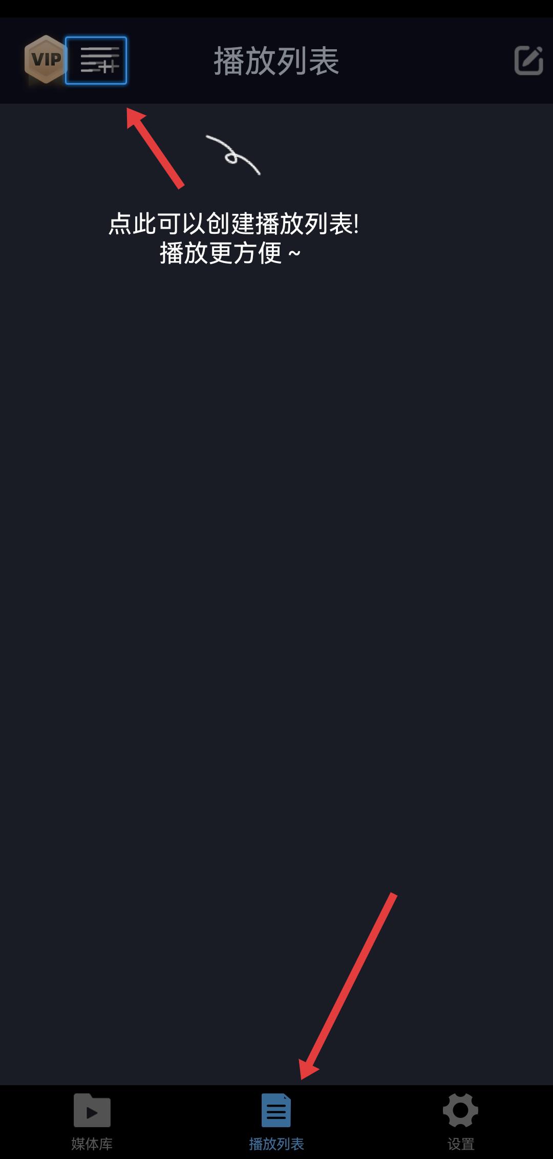 1、進入播放列表頁面后,點擊左上角的列表加號圖標(biāo),觸發(fā)新建功能。