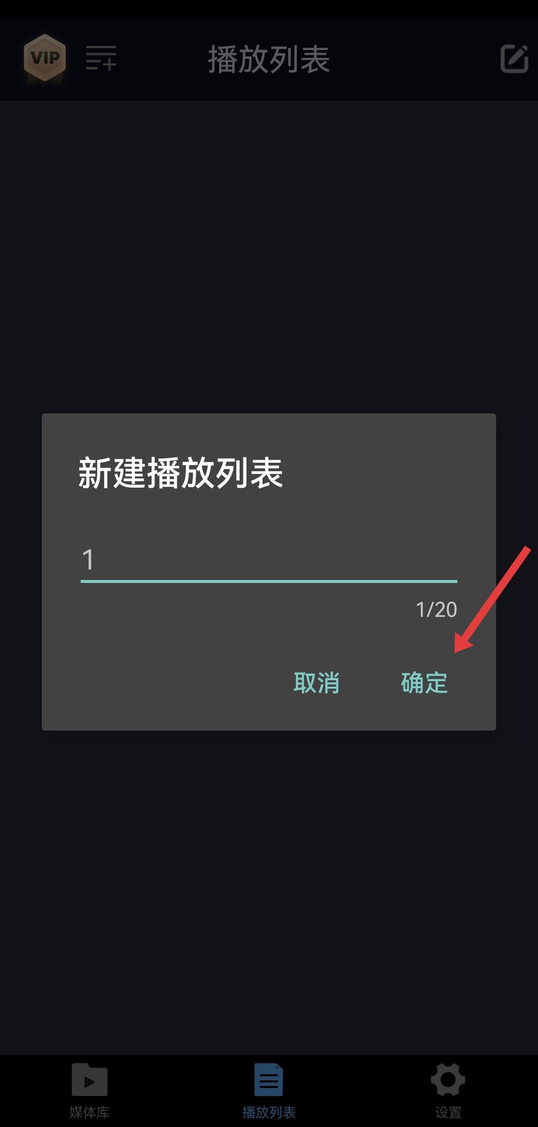 2、在彈出的彈窗中,輸入播放列表名稱后點擊確定,完成播放列表創(chuàng)建。
