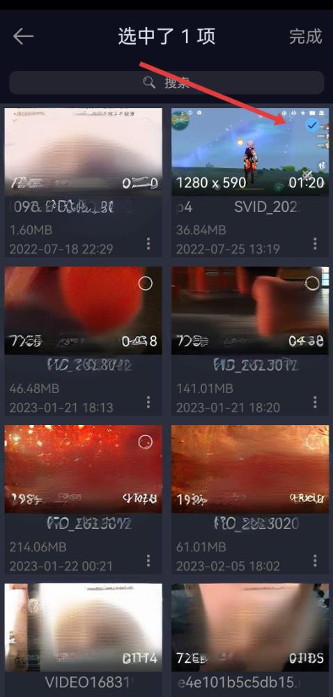 3、進入視頻選擇頁面,勾選需要加入播放列表的視頻,選好后點擊完成。