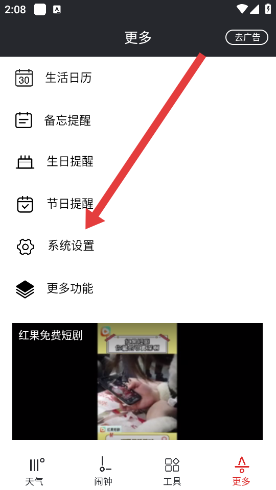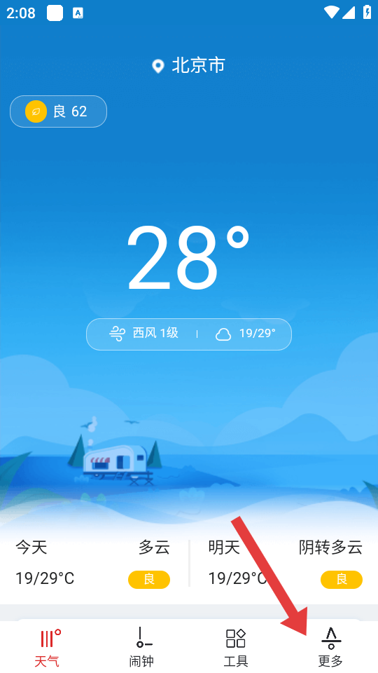 1、在噠噠天氣鬧鐘的主界面,點擊底部導(dǎo)航欄更多選項,進入更多功能頁面。