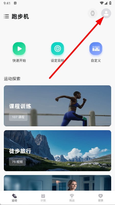 1、在運(yùn)動(dòng)秀app首頁,點(diǎn)擊右上角的個(gè)人頭像圖標(biāo),進(jìn)入我的頁面。