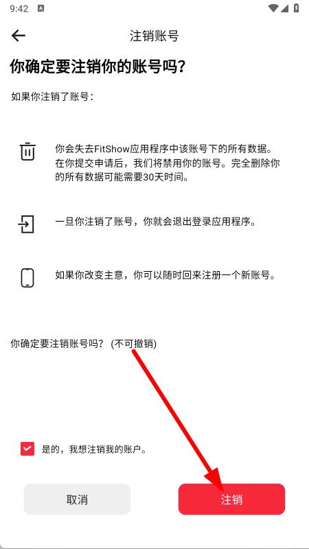 4、在注銷賬號(hào)提示頁面,勾選同意注銷的選項(xiàng),然后點(diǎn)擊注銷。