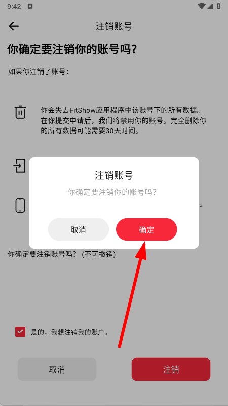 5、在彈出的確認(rèn)框中,點(diǎn)擊確定,完成賬號(hào)注銷操作。