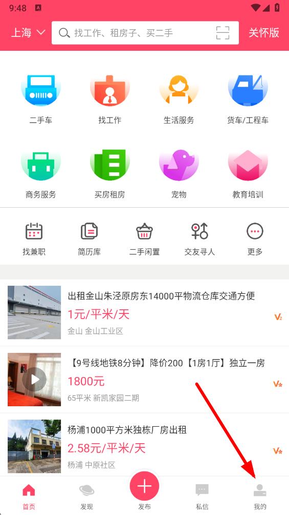 1、打開(kāi)百姓網(wǎng)app,點(diǎn)擊底部導(dǎo)航欄右下角的我的選項(xiàng),進(jìn)入個(gè)人頁(yè)面。