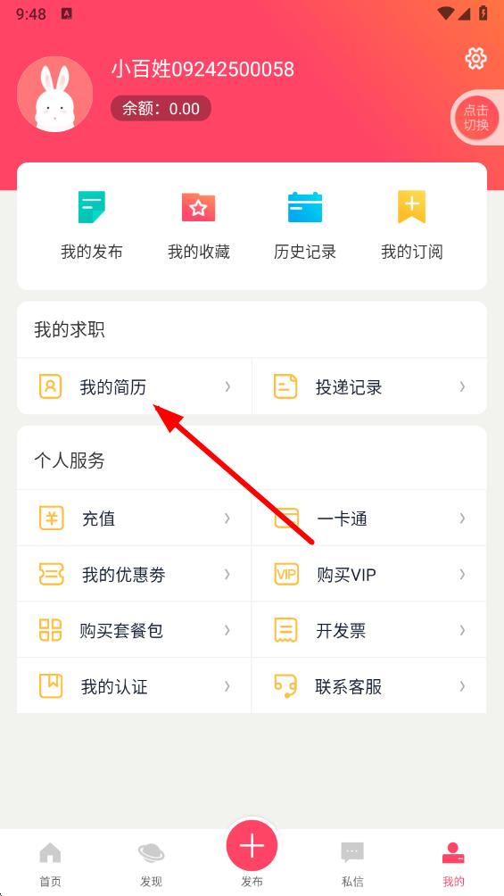 2、在個(gè)人頁(yè)面的我的求職板塊中,點(diǎn)擊我的簡(jiǎn)歷選項(xiàng)。