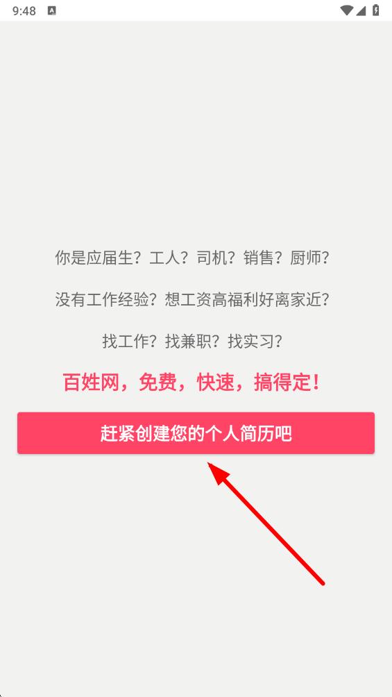 3、進(jìn)入簡(jiǎn)歷相關(guān)頁(yè)面后,點(diǎn)擊趕緊創(chuàng)建您的個(gè)人簡(jiǎn)歷吧按鈕。