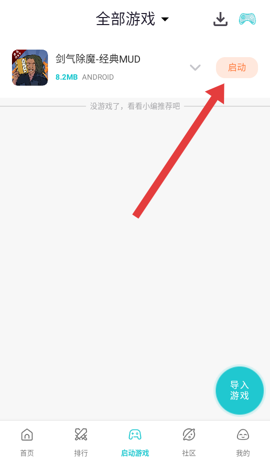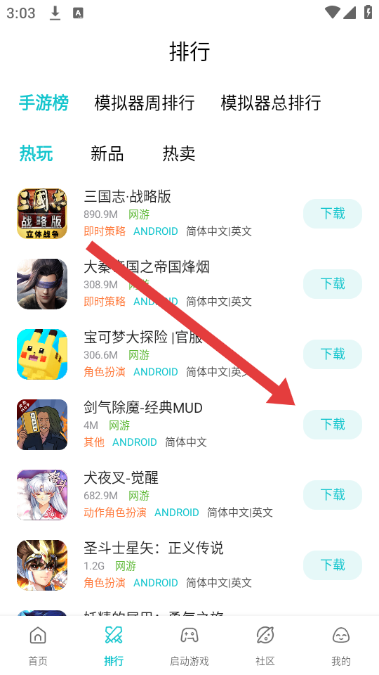 1、若游戲未安裝,先切換到排行頁(yè)面,找到目標(biāo)游戲,點(diǎn)擊右側(cè)下載按鈕安裝,再返回啟動(dòng)游戲頁(yè)面。