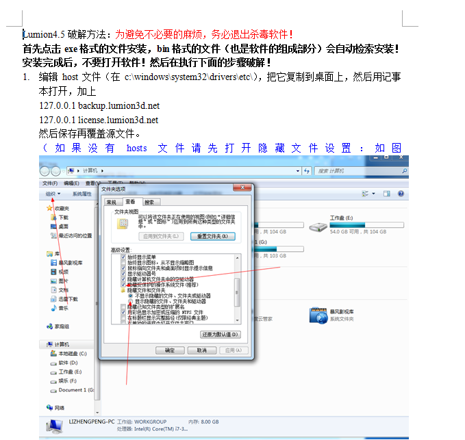 2.編輯host文件用記事本打開加上127.0.0.1 backup.lumion3d.net和127.0.0.1 license.lumion3d.net保存