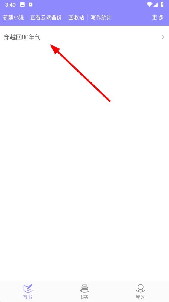 3、返回主界面,點(diǎn)擊已創(chuàng)建好的小說(shuō),進(jìn)入該小說(shuō)操作頁(yè)面。