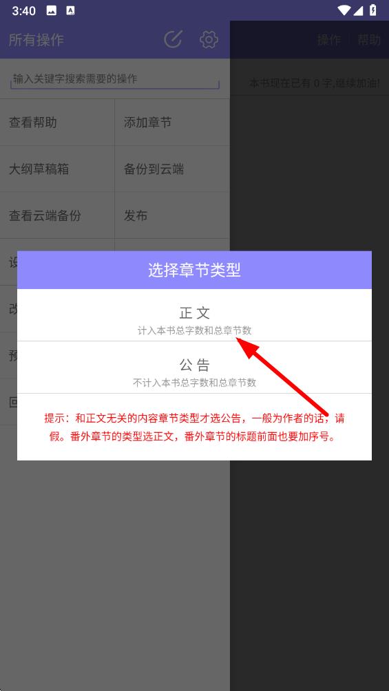 2.支持語(yǔ)音輸入、特色草稿箱、章節(jié)排序、首行自動(dòng)縮進(jìn)、小說(shuō)預(yù)覽、夜間模式、字體大小調(diào)節(jié)、導(dǎo)出TXT文件等眾多功能。
