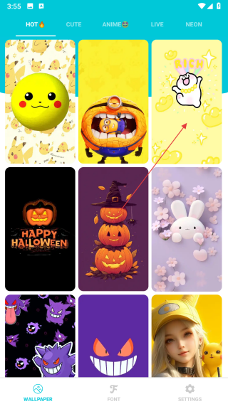 1、打開字體管家APP,挑選出自己喜歡的壁紙,點(diǎn)擊進(jìn)入該壁紙的詳情展示頁面。