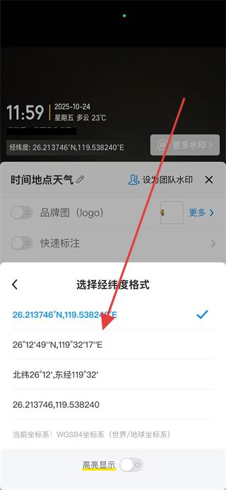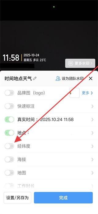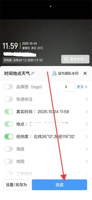 4.格式選擇完成后,點擊完成按鈕,即可成功添加經(jīng)緯度水印。