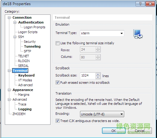 在Xshell中[file]-> [open] -> 在打開的session中選擇連接的那個(gè),點(diǎn)擊properties ->[Terminal],在右邊translation中選擇UTF-8,再重新連接服務(wù)器即可。