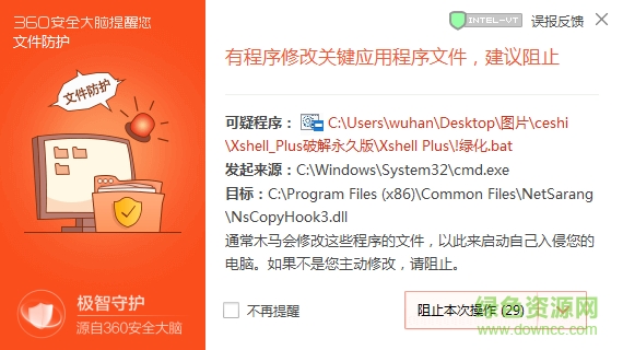 1.下載并解壓縮,文件中有個(gè)”!綠化.bat“,雙擊打開,打開后,360安全衛(wèi)士等殺毒軟件會(huì)提示危險(xiǎn)(如下圖),請(qǐng)選擇“允許程序所有操作”,切記不能阻止哦!。(軟件本身沒有任何問題,小編親測(cè)!)