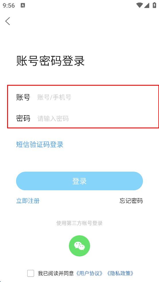 3、進入賬號密碼登錄頁面,在賬號輸入框中輸入賬號,在密碼輸入框中輸入密碼。