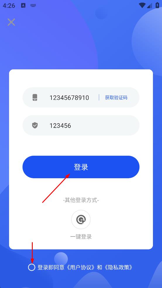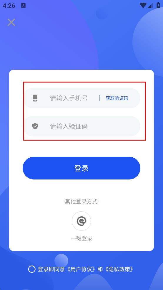 4、勾選“登錄即同意用戶協(xié)議和隱私政策,最后點擊藍色的“登錄”按鈕,即可完成刷圈圖軟件的登錄操作。