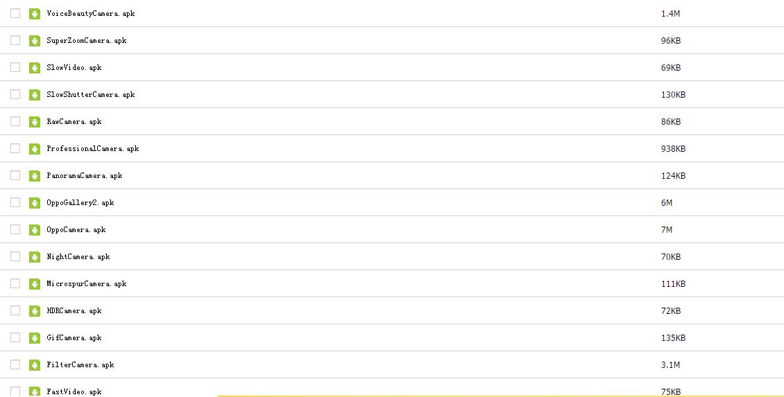 這里提供的是一個壓縮包,因為appo相機擁有多個拍照功能插件,每個插件都是一個單獨的apk文件,因此加起來有17個。
