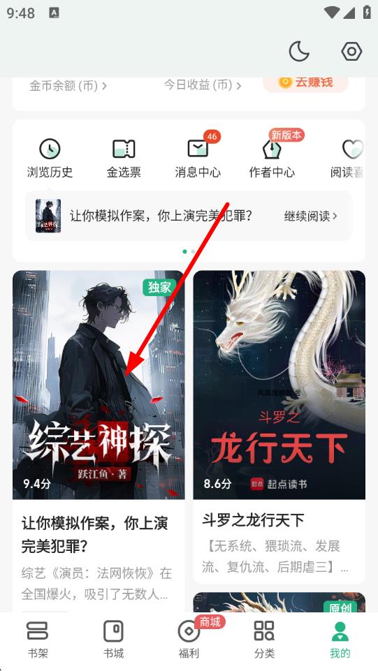 1、打開書旗小說APP,在書架或書城中,選擇一本小說,比如綜藝神探,點(diǎn)擊進(jìn)入小說閱讀界面。