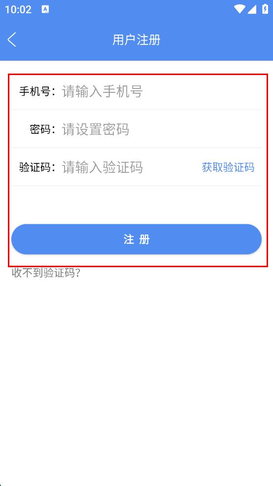 4、在用戶注冊頁面,依次輸入手機號、設(shè)置密碼,然后點擊“獲取驗證碼”,待收到驗證碼后輸入,最后點擊注冊按鈕,完成注冊。