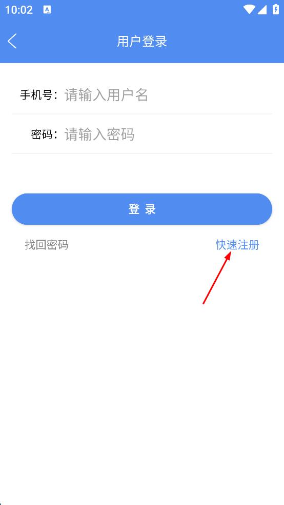 3、在用戶登錄頁面,點擊“快速注冊”選項,進(jìn)入用戶注冊頁面。