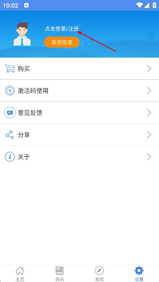 2、在設(shè)置頁面,點擊上方的“點擊登錄/注冊”區(qū)域,進(jìn)入用戶登錄頁面。