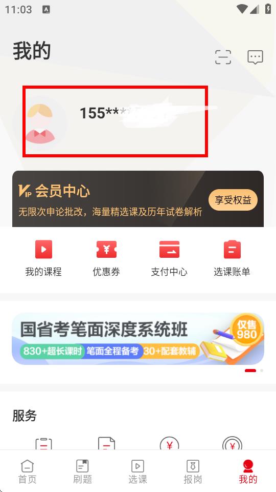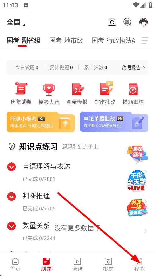 1、打開(kāi)中公教育APP,點(diǎn)擊底部導(dǎo)航欄中的我的選項(xiàng)進(jìn)入個(gè)人頁(yè)面。