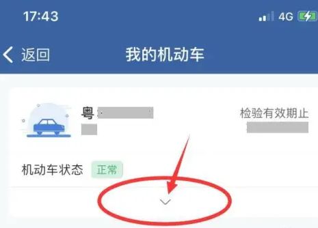 3、在我的機動車車輛狀態(tài)中點擊下方的【箭頭】打開更多彈窗;