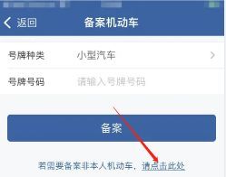 4、進(jìn)行機動車備案,選擇右下角的【非本人機動車】備案點擊處;