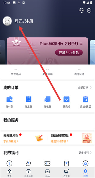 2、在進入到我的主頁時,可以點擊上方登錄按鈕,準備進行登錄操作。