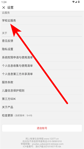 3、在設(shè)置頁面中,點(diǎn)擊學(xué)校云服務(wù)選項(xiàng)。